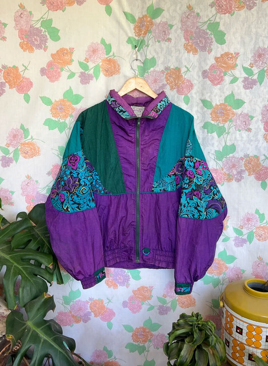 מעיל רוח סגול בסגנון שנות ה-90 עם שילוב דוגמאות