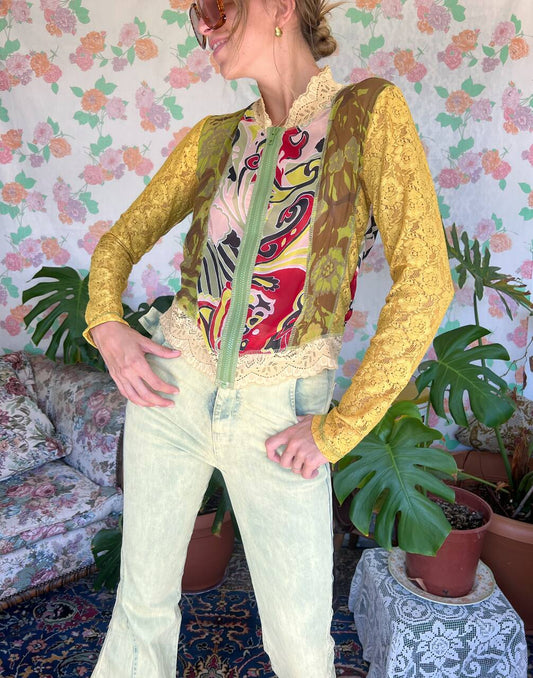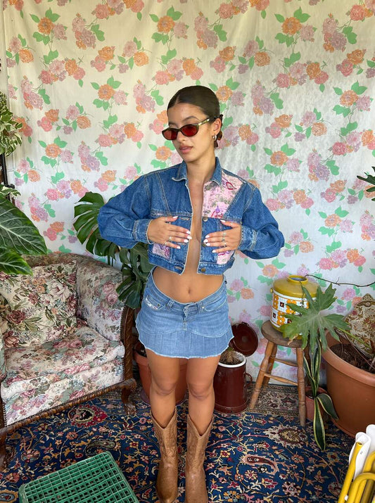 Sold outז'קט ג'ינס קצר פרחוני משנות ה-90