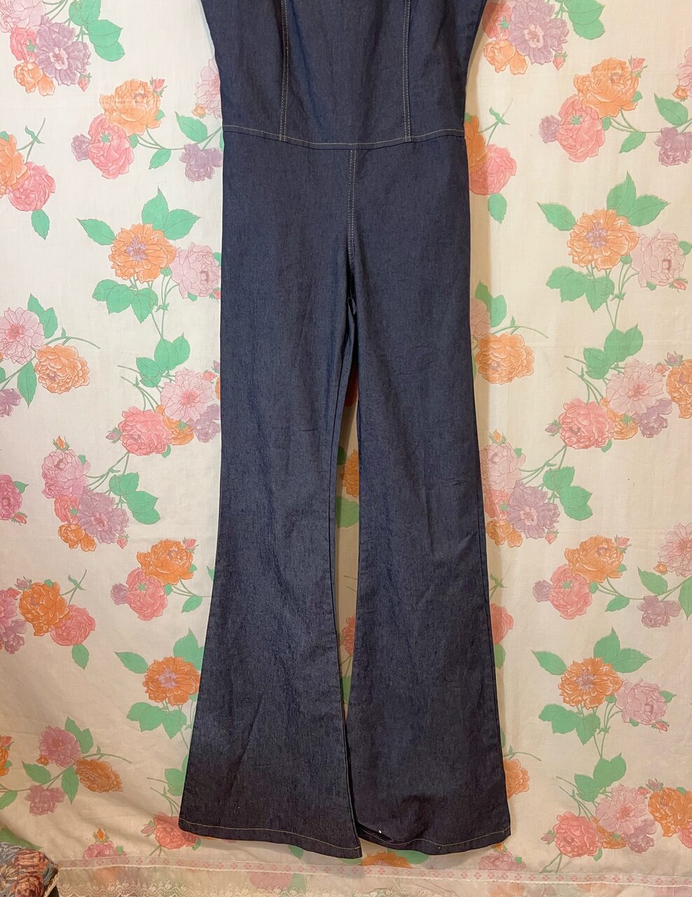 Unique lightweight vintage denim jumpsuit with adjustable straps, adjustable on the back, gorgeous silhuette and wide leg. Slightly stretchy fabric