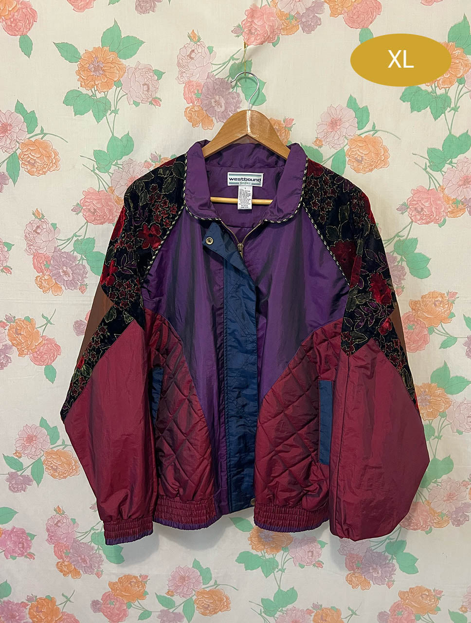 Sporty purple and pink quilted windbreaker with zipper closure and contrast details. Vibrant and durable. Fits a size XL.