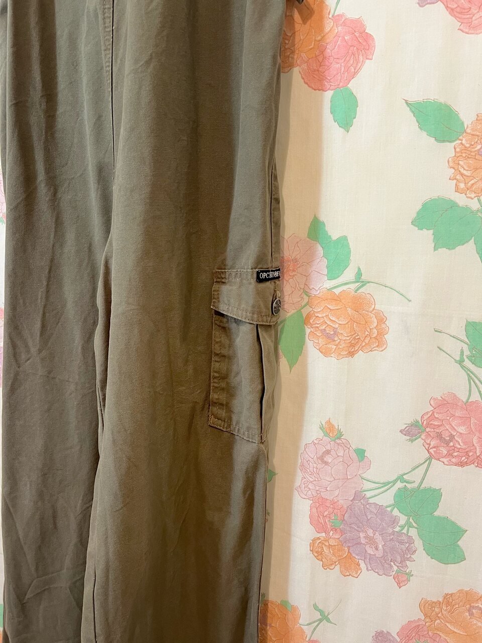 Vintage khaki cotton overalls by Opchinjeans, gorgeous cargo fit and loose lightweight fabric. Fits a size 38.